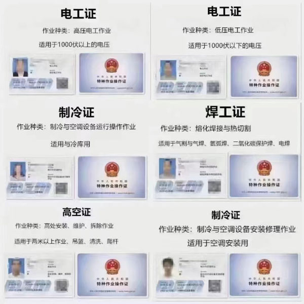 低壓電工證,高壓電工證,熔化焊接與熱切割作業(yè),焊工證,電工作業(yè)-(電力電纜,繼電保護(hù),電氣試驗(yàn),防爆電器作業(yè)),高處安裝維護(hù)拆除作業(yè),登高架設(shè)作業(yè),制冷與空凋設(shè)備運(yùn)行操作作業(yè),制冷與空凋設(shè)備安裝修理作業(yè),施工吊裝作業(yè),施工挖裝作業(yè),危化品負(fù)責(zé)人/管理人員,危化品從業(yè)人員上崗證,新考,復(fù)審,換證,