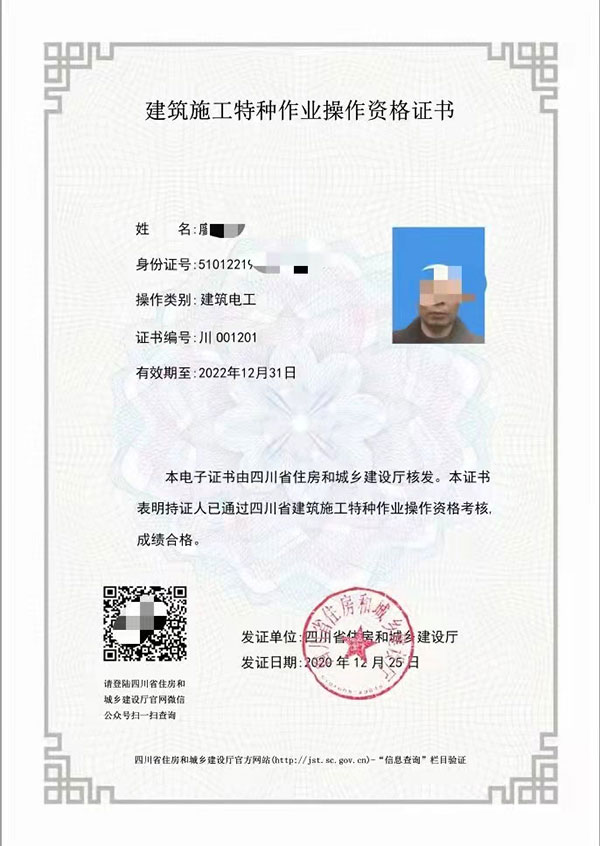 建筑電工證就是我們長期住建廳頒發(fā)的工地從業(yè)人員必須持有的電工上崗證,以前頒發(fā)單位叫建設(shè)廳,因為在工地上從事電工作業(yè)人員需要持有此上崗證,以前是綠色本子的,像駕駛證一樣的上崗證,現(xiàn)在改版后,是沒有實體證書了,直接從相關(guān)網(wǎng)站下載電子版證書就可以了,因為現(xiàn)在住建廳建筑類的建筑類特種作業(yè)操作證,是沒有國網(wǎng)查詢的,都是每個省的建設(shè)廳官網(wǎng)進行查詢真?zhèn)巍5闶冀K要記住一點,說人不去參加考試或者培訓(xùn),就直接發(fā)證的人員及機構(gòu),大部分都是騙人的,建議不要相信,以免上當(dāng)受騙。