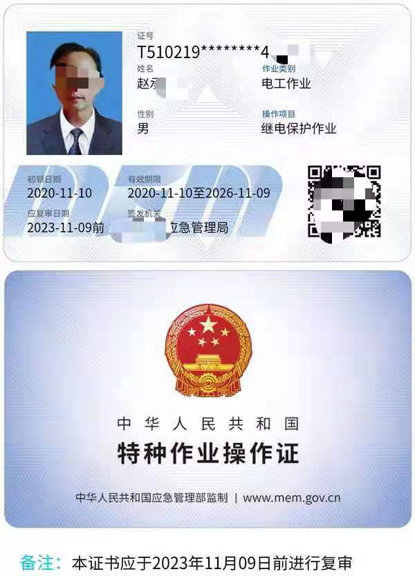 繼電保護作業(yè)證證書展示: