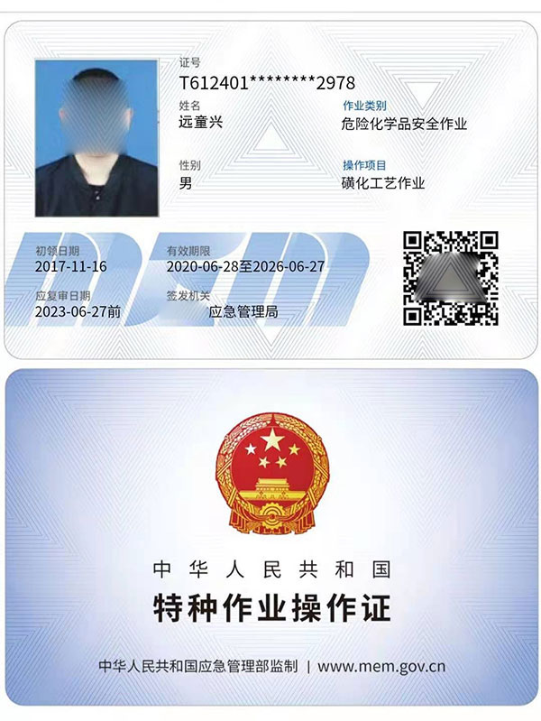 一、危險化學品安全作業證,1,化工自動化控制儀表作業,2,過氧化工藝作業,3,烷基化工藝作業,4,氧化工藝作業,5,加氫工藝作業,從業人員上崗證,特種作業證是3年一審