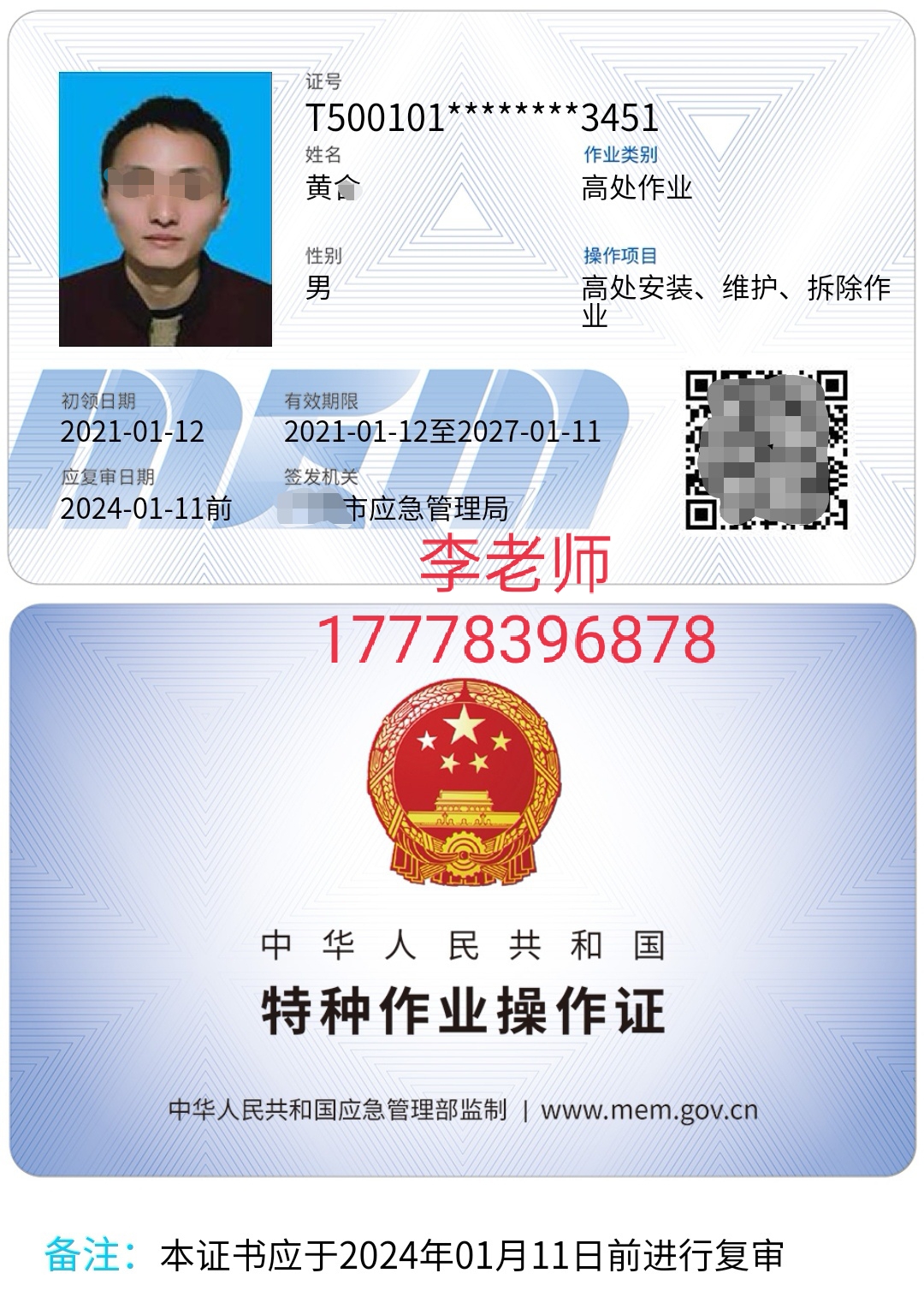 登高作業(yè)和高空架設(shè)作業(yè),都應(yīng)急管理廳(原安監(jiān)局)特種作業(yè)證!需要3年一審,6年一換!